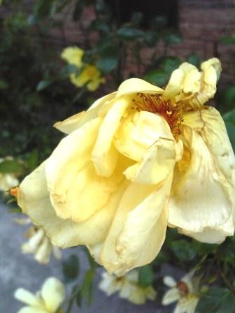 我が家で一番早くから開いて今も沢山蕾をつけて順次咲いてる立ちせいのバラ、開くとあっとゆうまに・・・