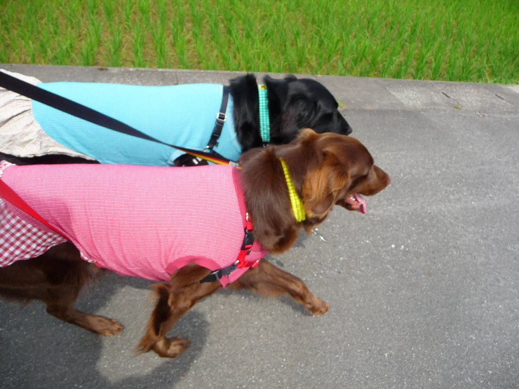 まぁでももう歩き出してたしとりあえずカヤはおうちの中でちっこもんちもするからいいかって事で合羽を気た凜とお散歩。