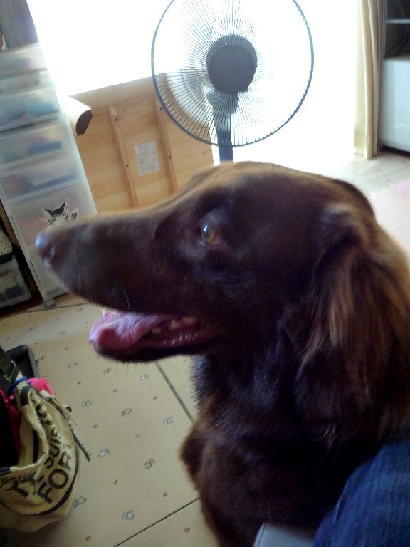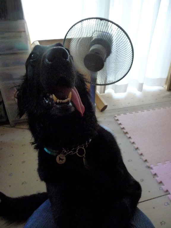 2ワンともちゃっかりchababaと扇風機の間に割り込んできてこの場所の取り合い