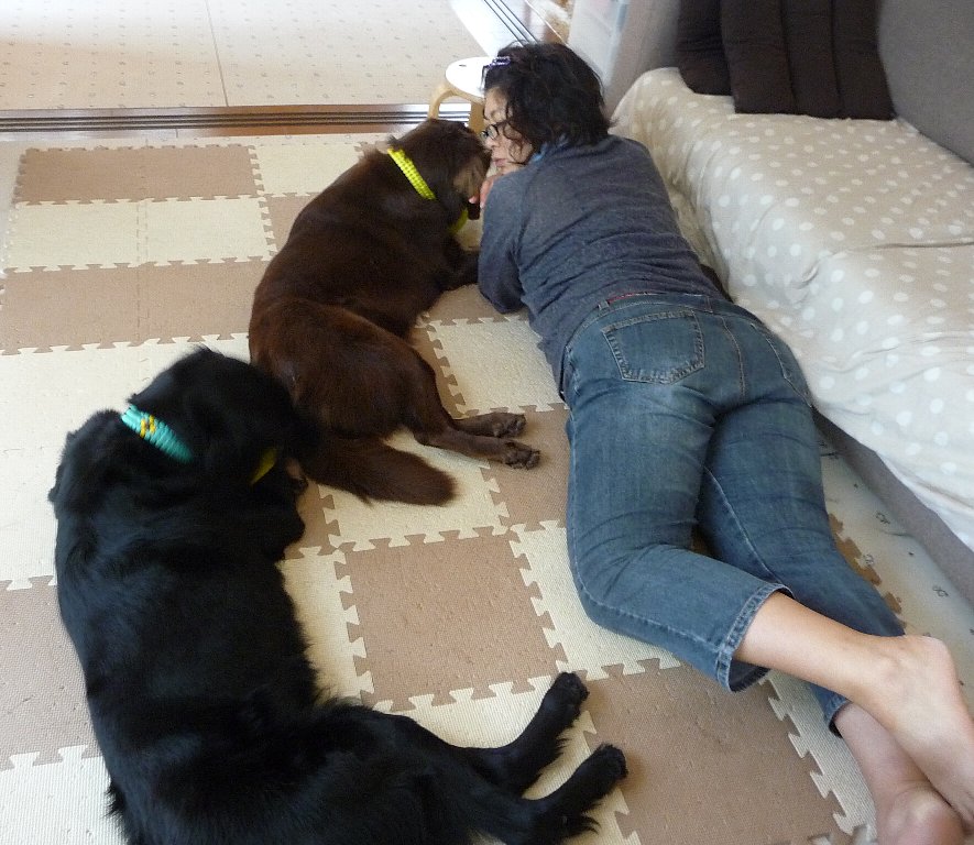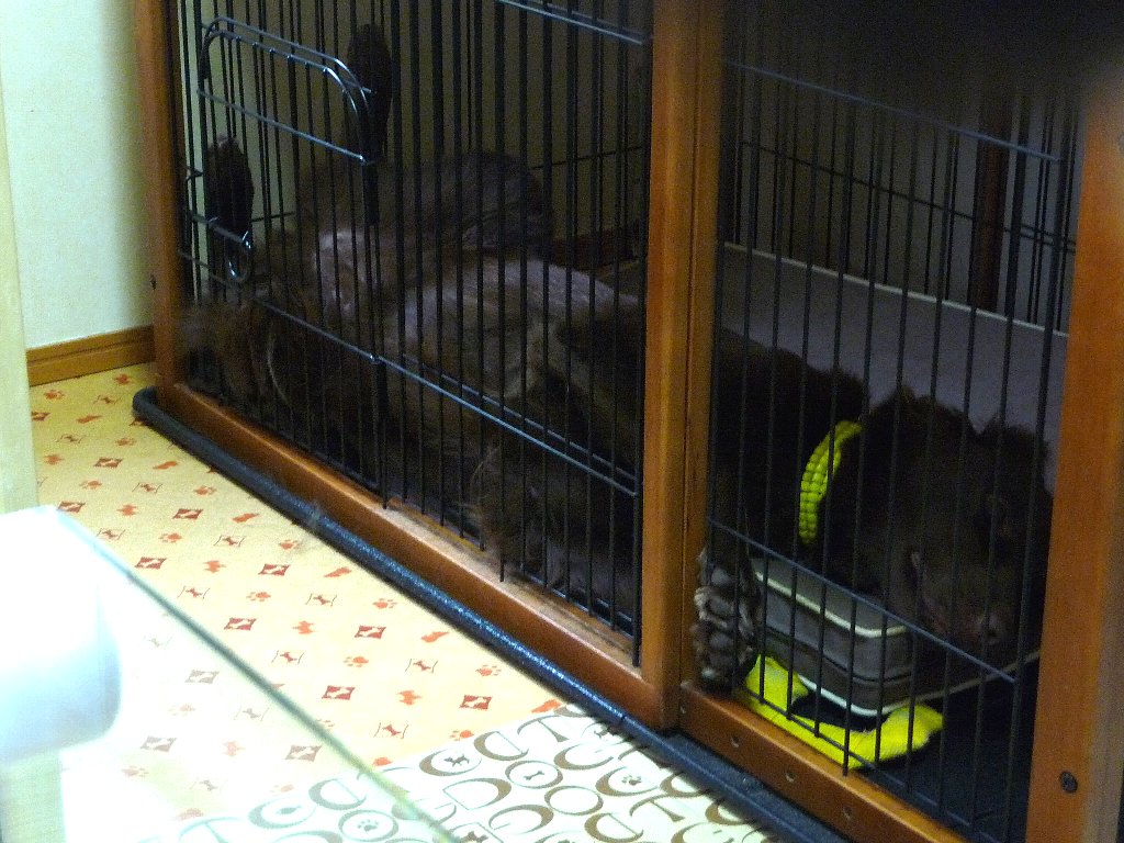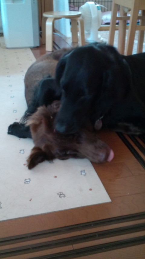 わんずも力が余るようで激しくお部屋でガウガウ、カヤの毛が散乱、ただ今カヤさんカンモウキ?凜は完全復活のようでカヤに負けてません。