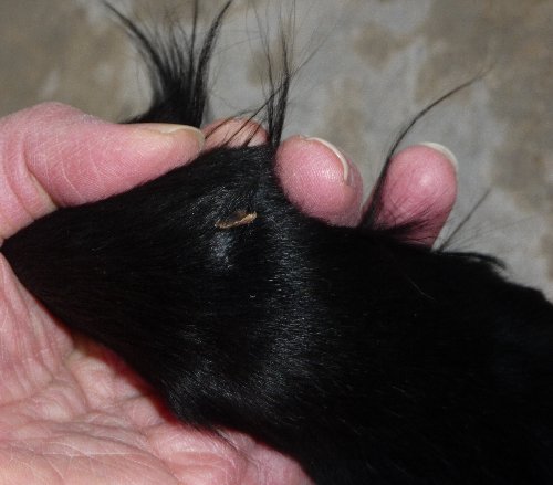 3mmほどのちょっと幅のある傷、毛がなくなって赤くなってました。