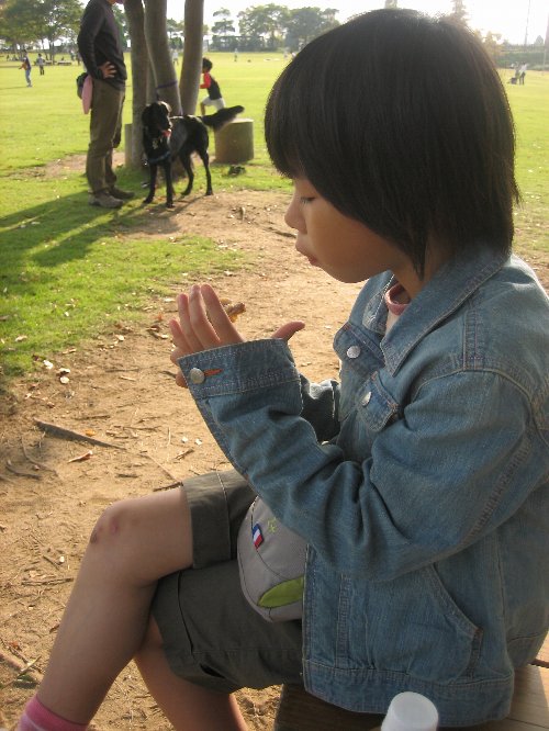 実は朝、姉ちゃんに今日学校へ行くなんていって無いんだけどなんだかちょっとぐずぐず、でおなかが痛い・・・ほんと体に不調の出る子、我慢してるようには見えない天真爛漫さだけど、色んなこと我慢してるんでしょうね。