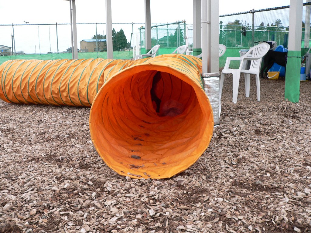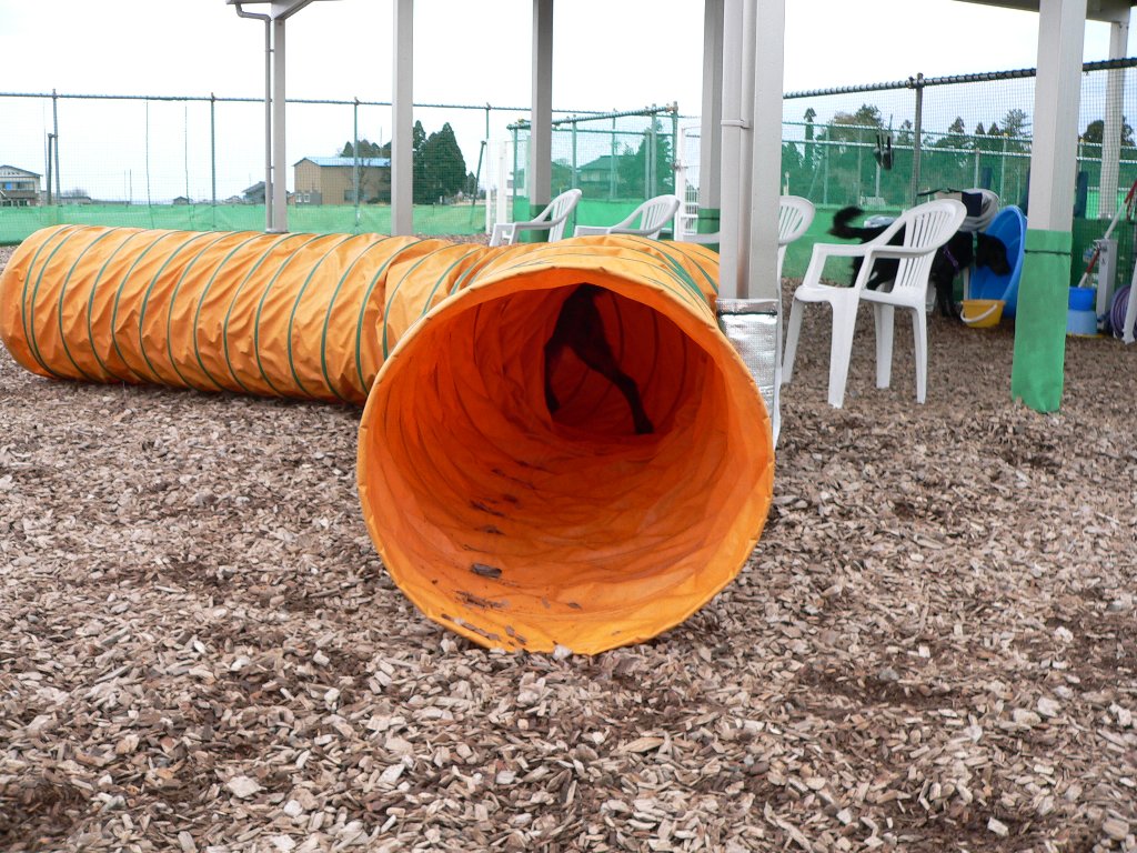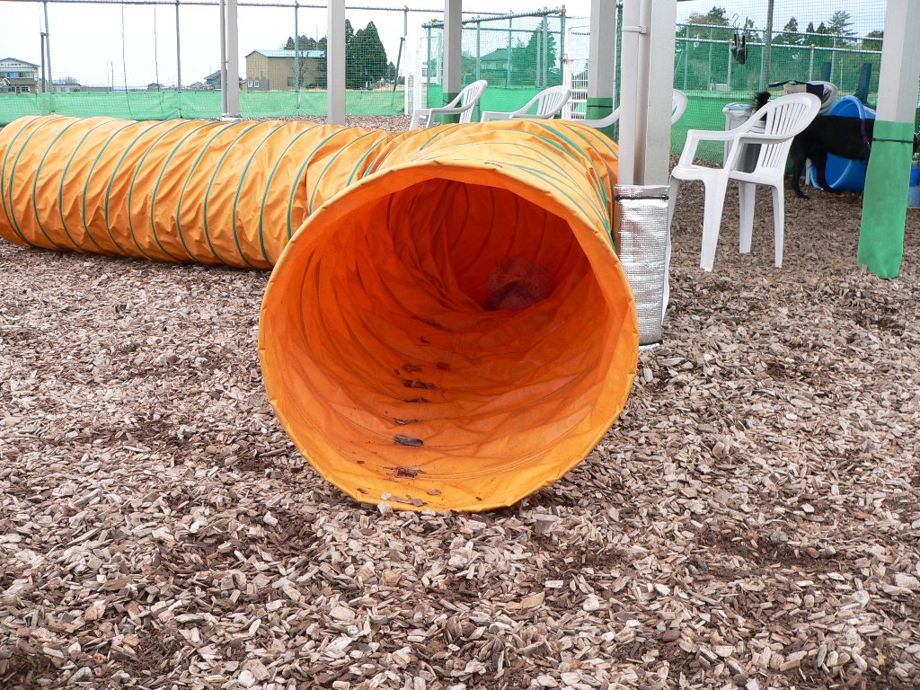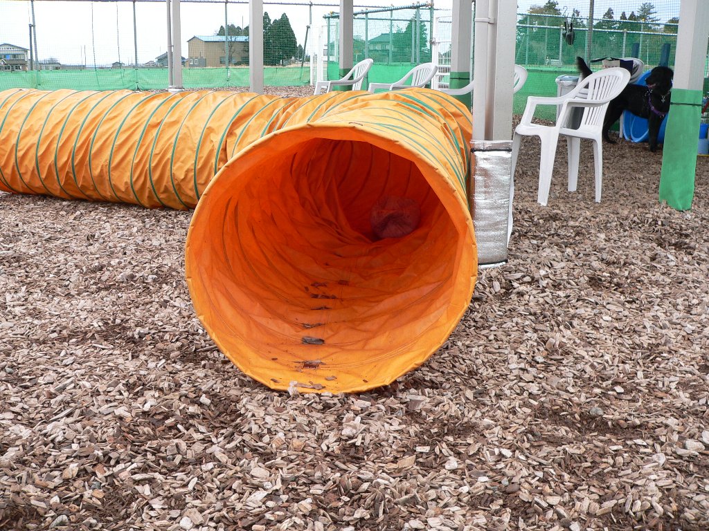休憩とプロレスの繰り返しなんで、ちょっと目新しいことでもとトンネルにボールを蹴りいれてみる。