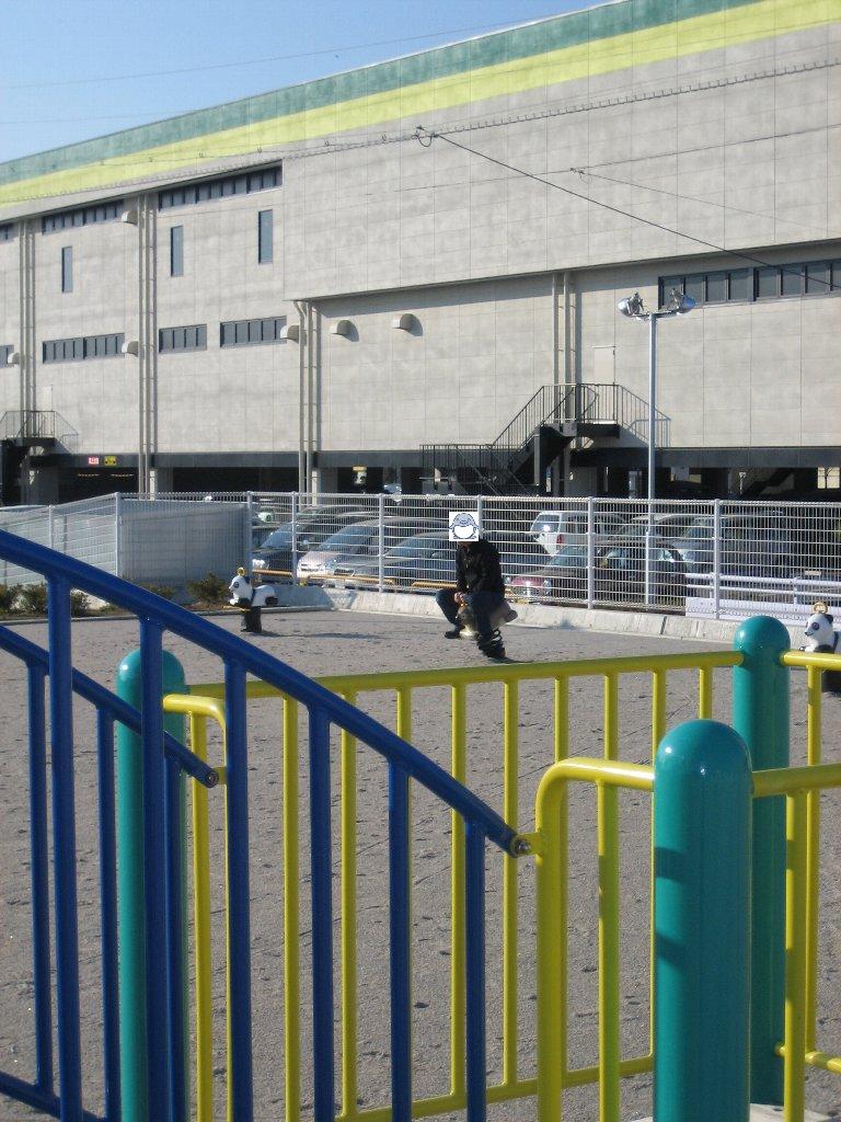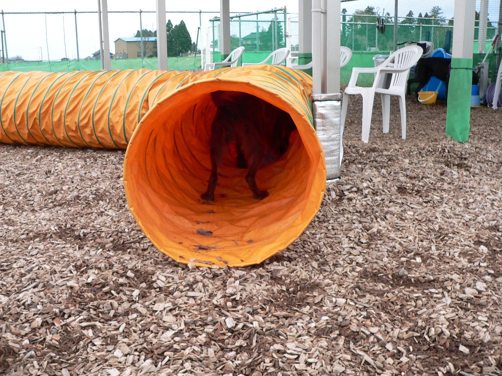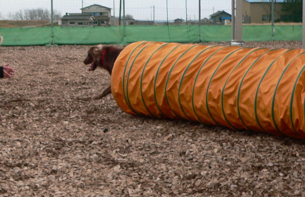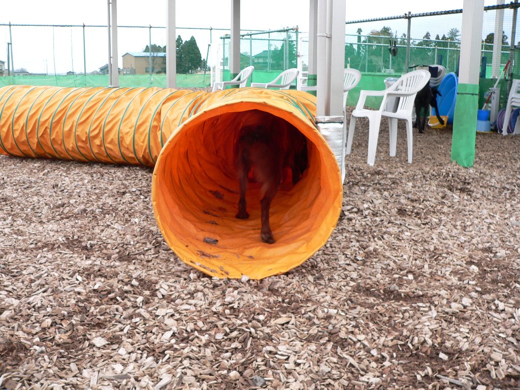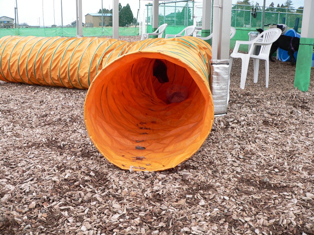 休憩とプロレスの繰り返しなんで、ちょっと目新しいことでもとトンネルにボールを蹴りいれてみる。