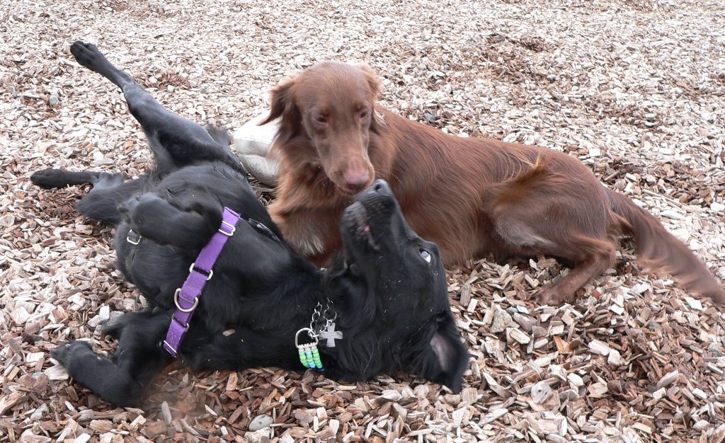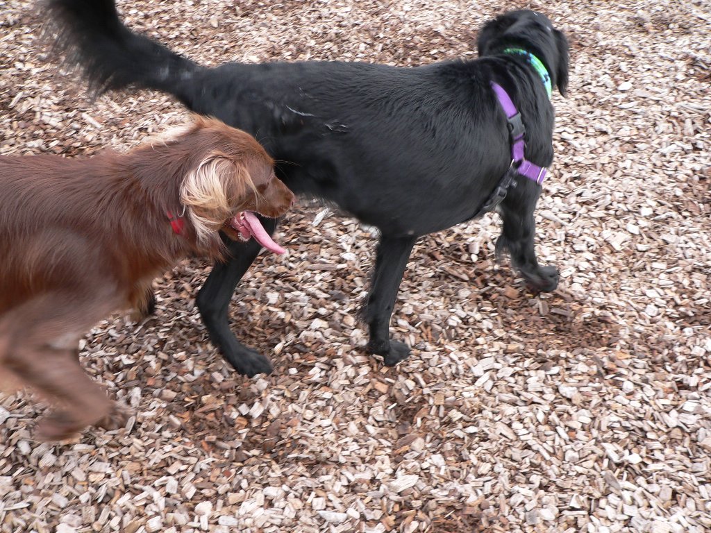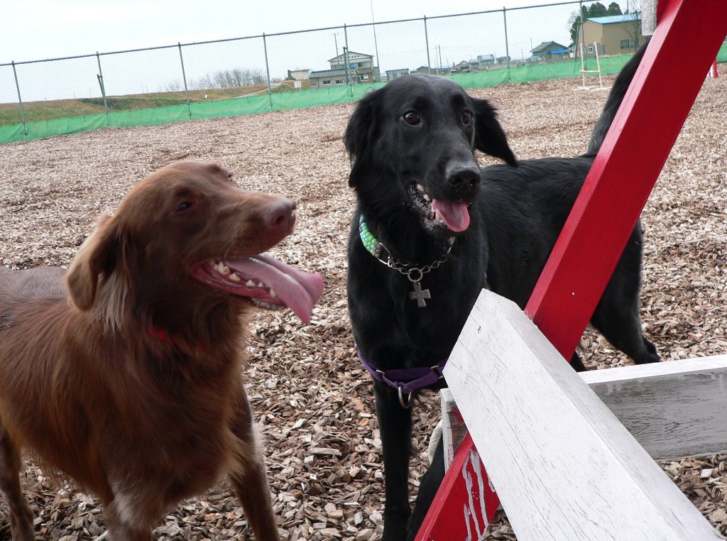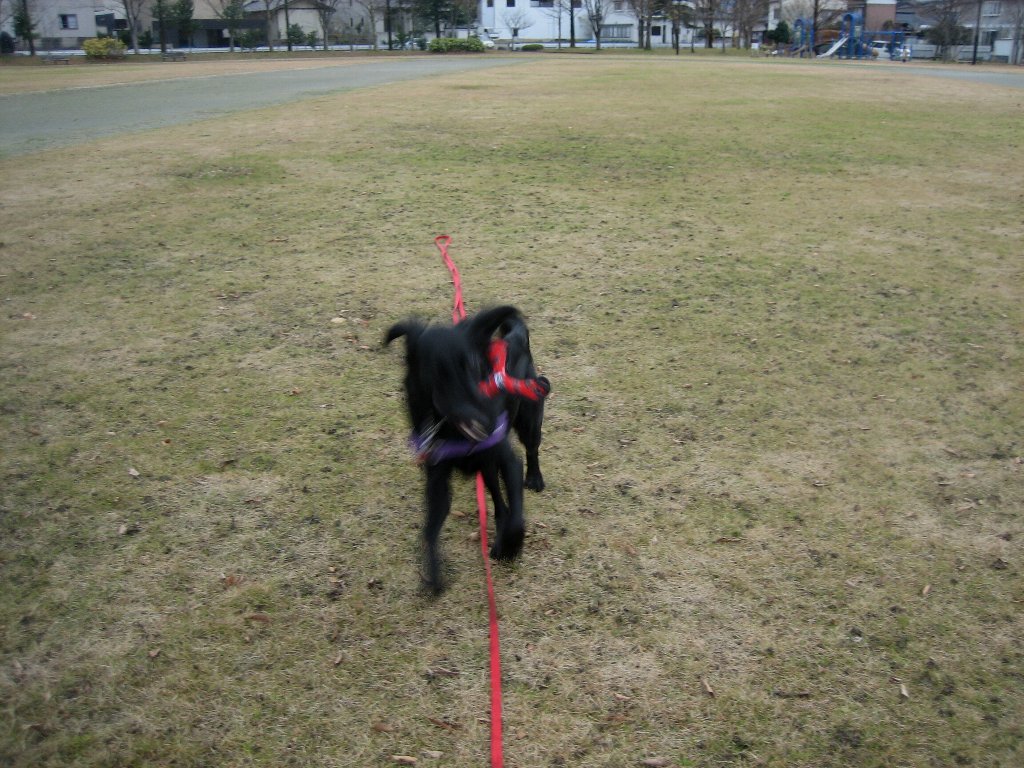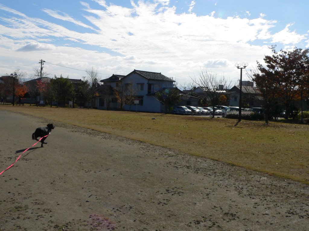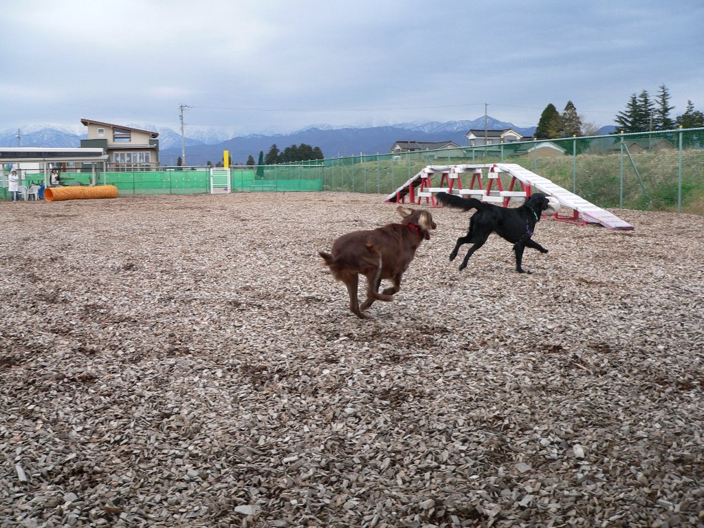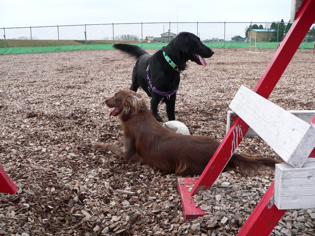 だって昨日の公園でちょっと遊んだだけで足がすごいことになるようないつまで続くのか知んないけど最近のこのお天気、ワンちゃんの広場ならウッドチップだし走り回っても問題ないよね(^^)b