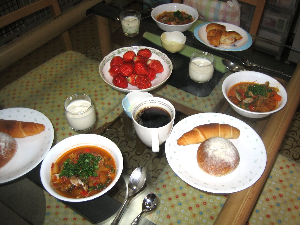 汁物は豆腐とわかめのすまし、でも姉ちゃん要らないって・・・。