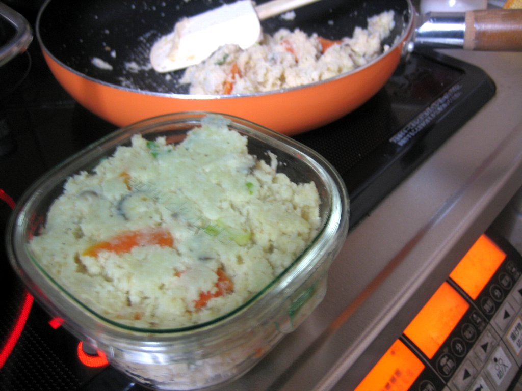 んで、昨日もらってきたおからを調理したんだけど、イカを入れたかったのに今日は買い物に行かなかったから干しエビを。