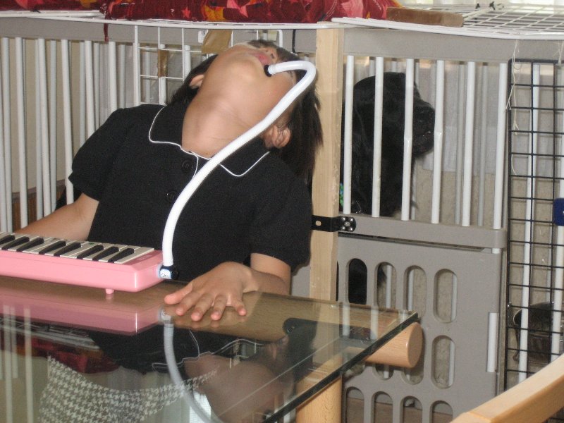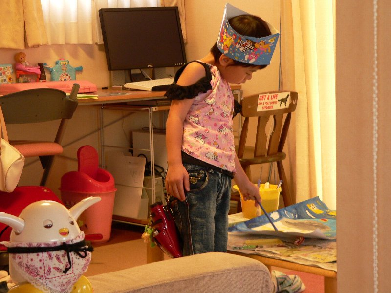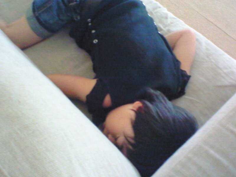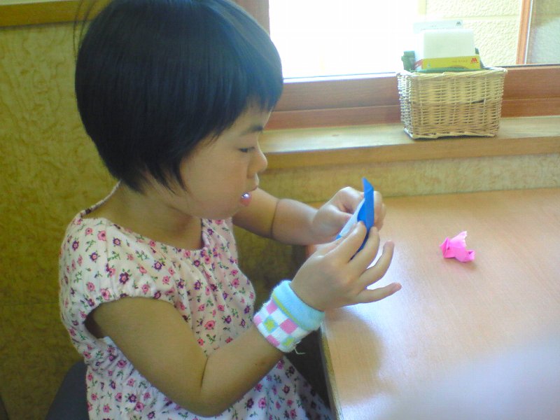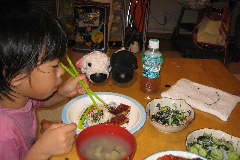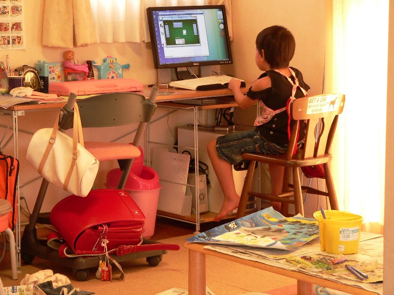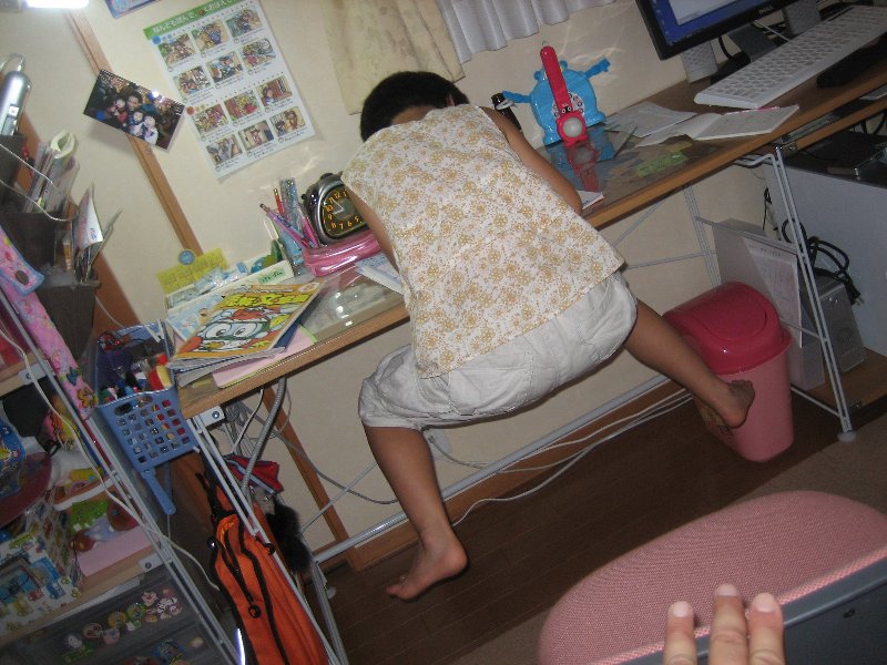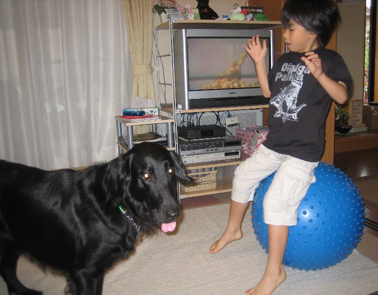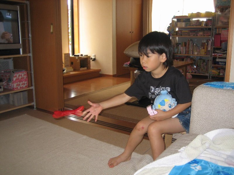 本日のノルマをこなした姉ちゃん、さてビデオ!!とうれしそうにリモコンを握るも、母からSTOPの声(ー'`ー;)