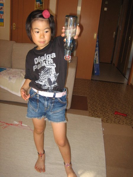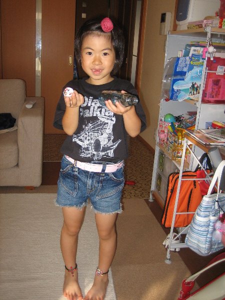 その後お昼ご飯を済ませ、夕方まではこんな感じで過ごした凜家、姉ちゃんの熱も36度後半に下がってきたんで(ほんとにぐんぐん下がってくるって感じなんです)、凜をNew凜号ケロロ軍曹号に乗っけてみるのもかねてドラックストアまでお買い物。