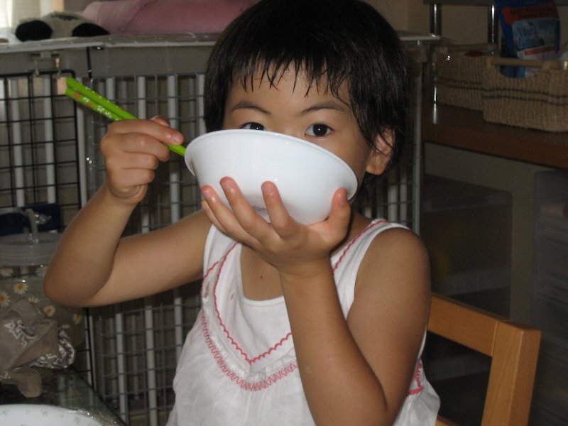 ラヂオ体操から帰ってきて、リクエストのおにぎりと卵焼きをほうばる。