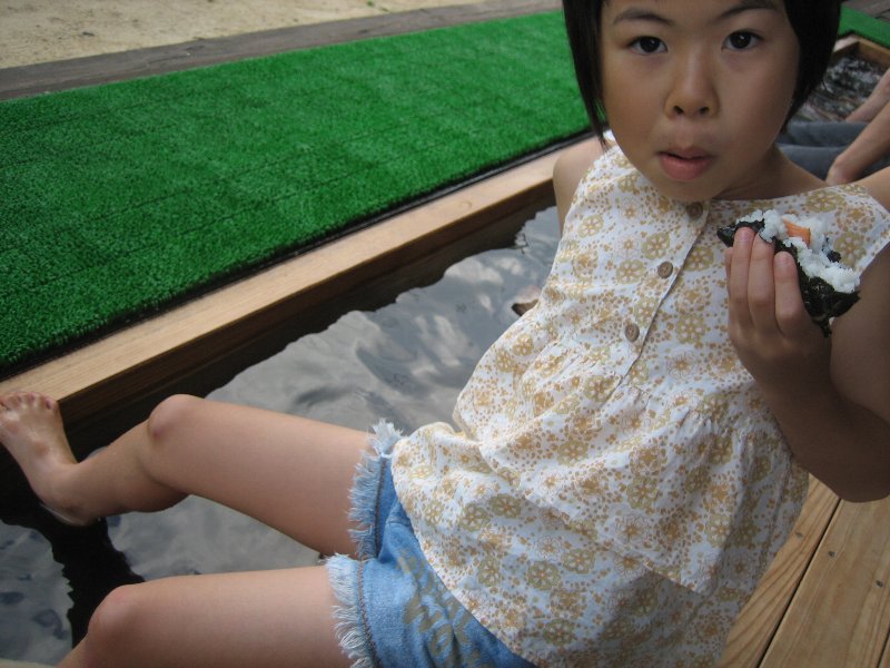 帰りにクロスランドへ寄ってみたんだけど、駐車場から芝生まで行く間の道が熱そう。