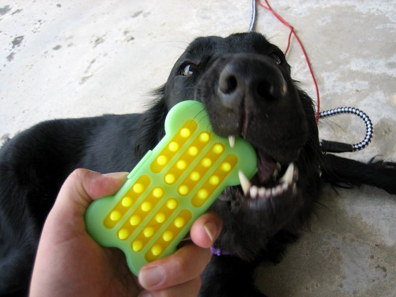 ついた商品を見たら、普通のコングより頑丈そうで、おやつの出口に弁もついていてなかなか優れもの!