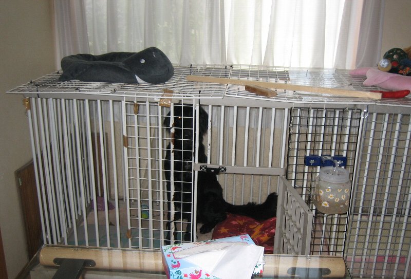 そのうちおなかが空いたらしい凜、勝手にサークルの中に入って待ちの態勢になっちゃいました。
