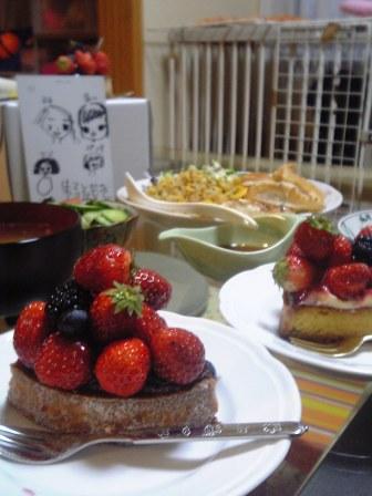 チョコ系が絶品なんだけど、今日はホールのがこのイチゴのタルトだけだったのと、姉ちゃんがこれがいいぃ!!って言うんでこれにしてみました。