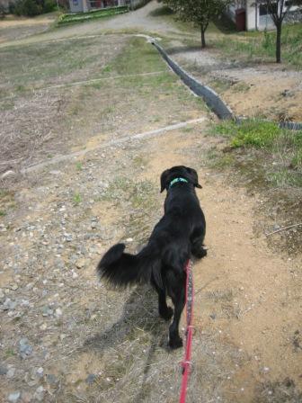今日のお散歩は、団地の裏の車両通行止めの道行ってこようか。