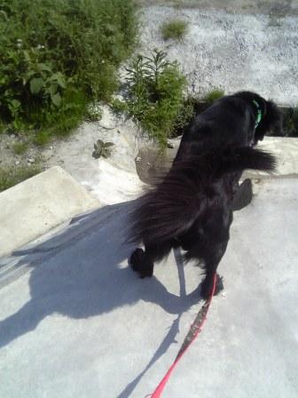 だって↑の写真の凛の大きさと1段のブロックの四角の大きさ見て見て!この四角が5段、それに基礎があるわけで・・・勾配もすごいでしょ?