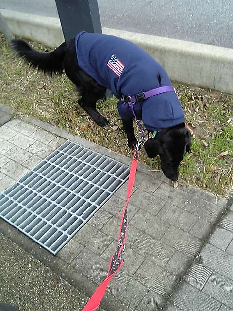 凛は今日は午前中はサークルでチンとして姉ちゃんの勉強終わるの待って、車に乗る前に歩き回らないでうちのすぐ横でんちとしっこ済ませて、その後はずっと車に乗って小矢部でちょこっとおしっこ散歩したくらい。(いつもんちは絶対うちの回りでしません)