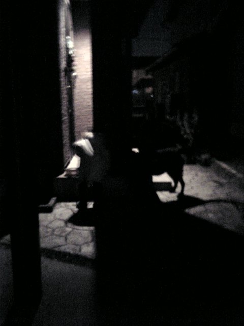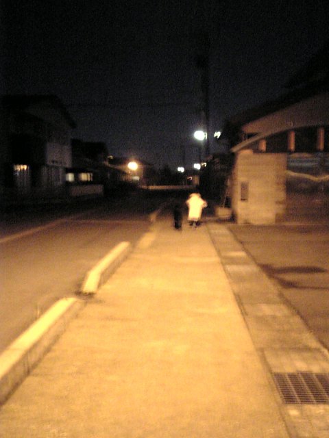 そして夜、オレンジ色い、まぁるい大きなお月様の出てる中、姉ちゃんとお散歩へ。