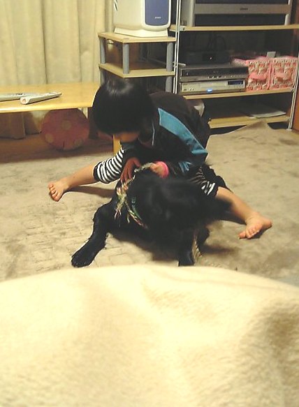 玄関にいたchababa、その位置で姉ちゃんにどうしたのか問うと、凛ちゃんパパの顔噛んでめぇ無くしたぁ~!!と大泣き。