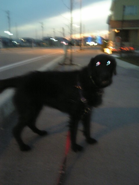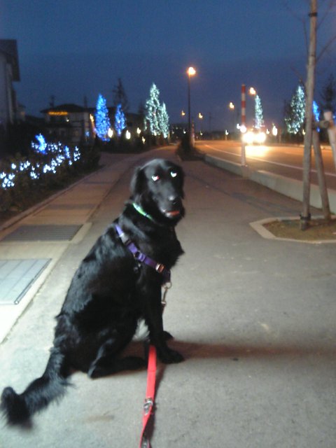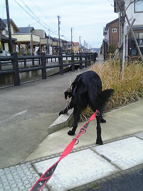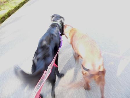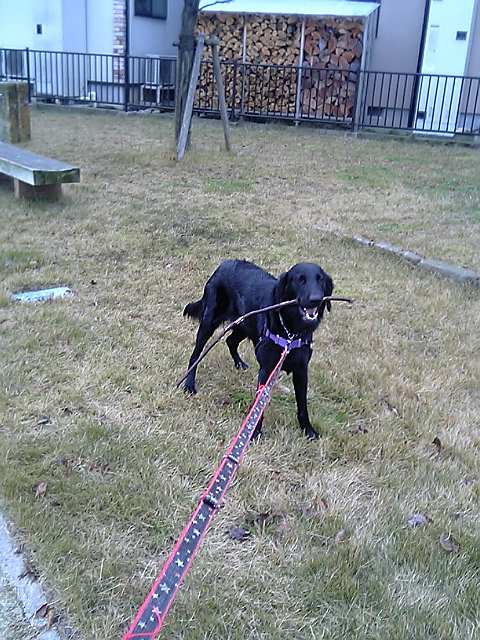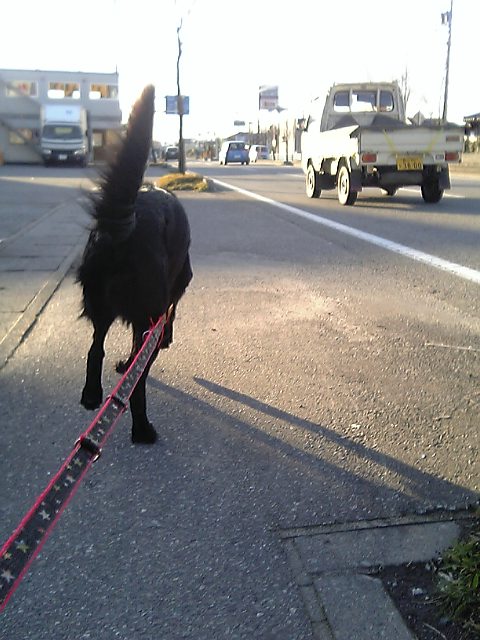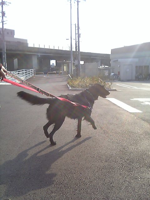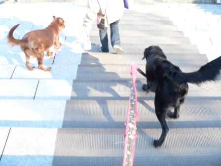 で、夕散もいい子でと言いたいとこだけど、うちに向かう道すがら、シェルティのラッキーと遭遇して、ワンワンぴょんぴょん合戦。