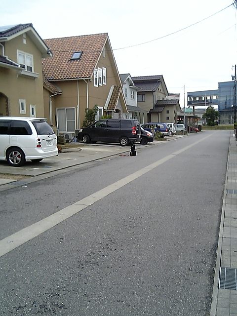 反対方向に行けばよかったんだけど、chababaもうちに帰る事しか頭になくって(案外融通利かないし応用べたなんです、料理は応用してるんじゃなくってずさんに分量も図らず材料も本通りにはせず、そしてあくなき未知への挑戦を・・・)、途中まで同じコースなので動くわけに行かず、見えなくなるまでそこで見送ってたわけです。