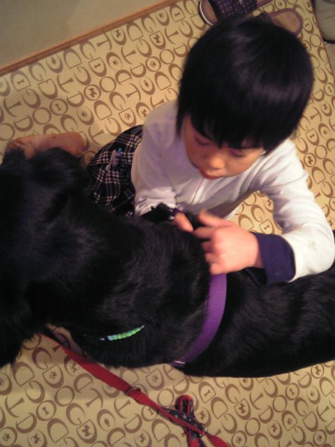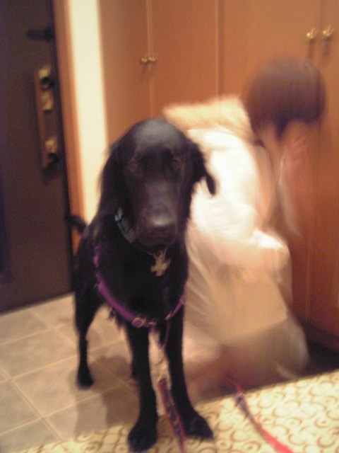 家に着いたら水をやって、かぁしゃんがまだでしぃと踏ん張って家に入るのを嫌がる凛輔を引っ張りいれて・・・今度はハーネスをはずして、足拭き、体拭き。