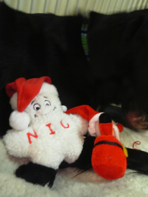 昨日散歩から戻って部屋に入ると、クリスマスプレゼントでもらったリカちゃんシリーズのパパがソファの上におきっぱなしでした。