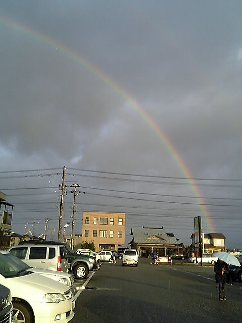 おっきなおっきな虹が濃いのと薄いの2本かかってます。