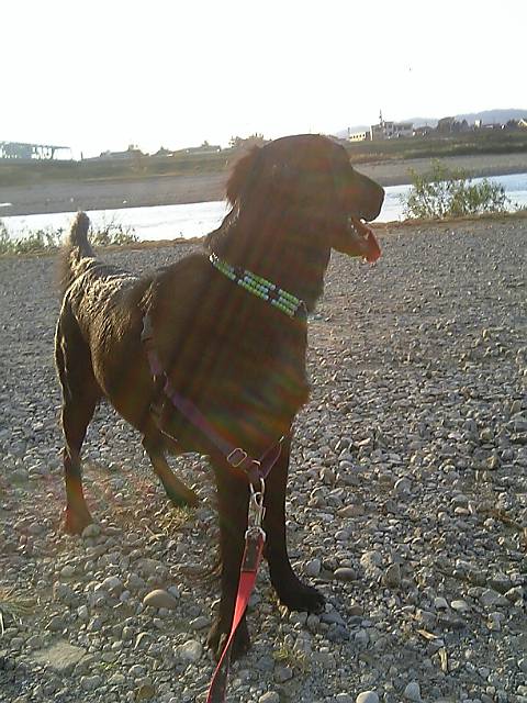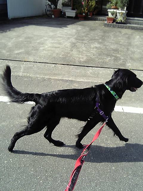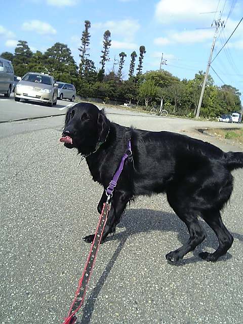 通り過ぎながら『違うんですよぉ~、フラットコーテッドレトリバーって言うんですぅ。』『そういやぁなんか毛並みちごねっ!あっらぁ~いい子やねぇ~』と会話を交わしすれ違いました。