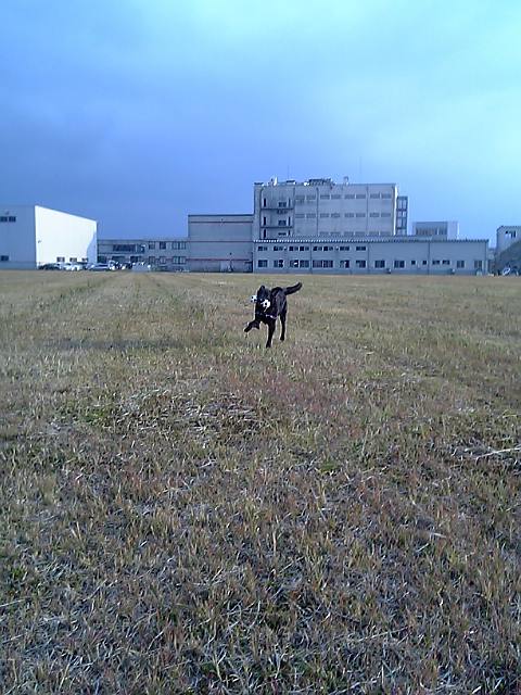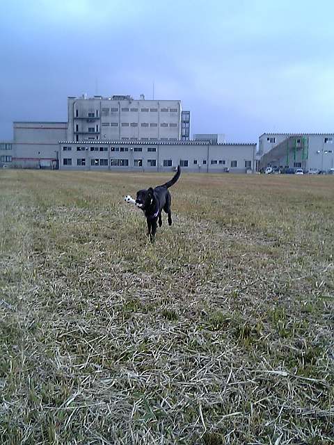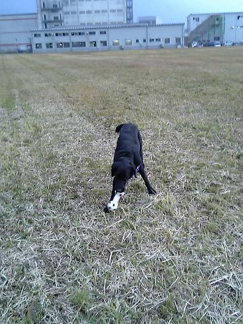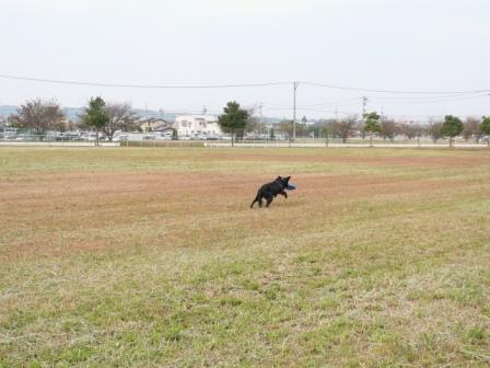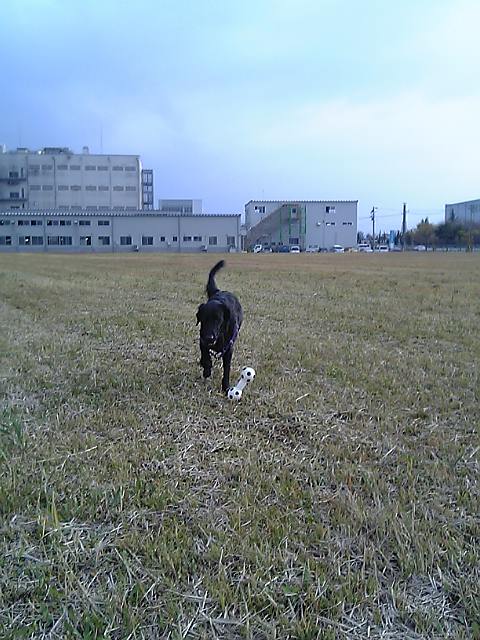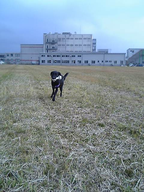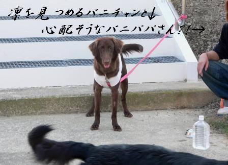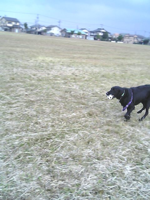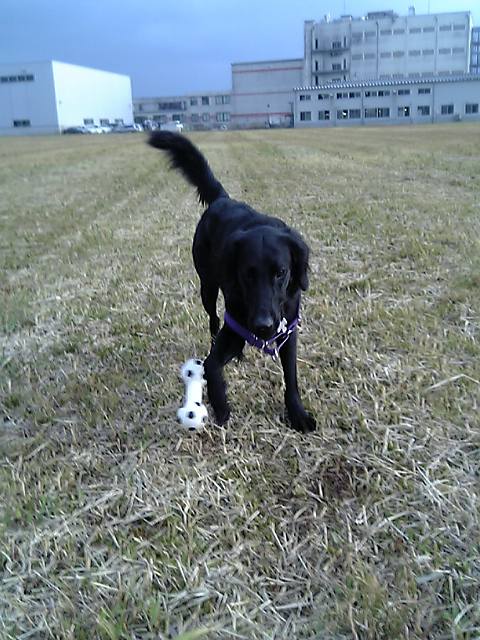 凛はいつものもってこい遊びのごとく、うれしそうに取りに行こうと地団太踏んでます。
