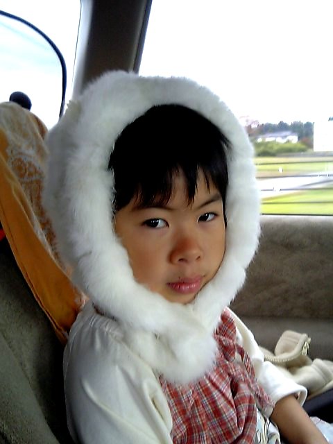 雨が降ってて合羽を着せたので、あんまり中に着せると通学途中に汗だくになっちゃうんでそんなにも着せることも出来ず・・・カバンの中にダウンベスト一枚突っ込んでおきました。