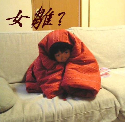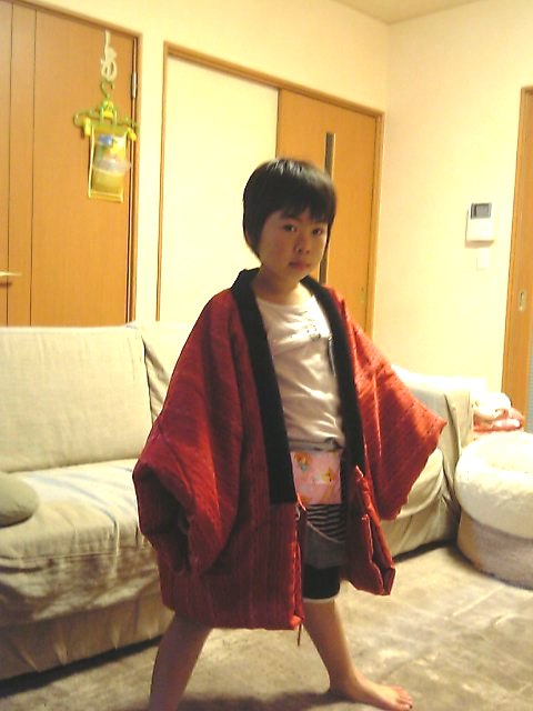 学校で作ったピンクのちゃんちゃんこ(多分ビニール製)を着るから下にダウンベストなんて着れないかなぁ。