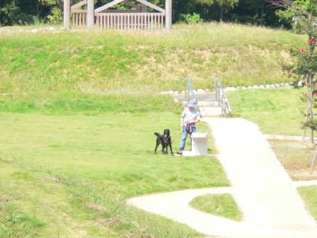 濡れ鼠凛輔は荷物もちchababaと芝生で待機です。