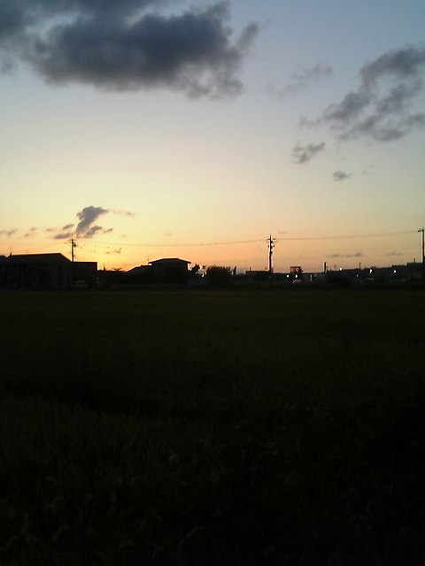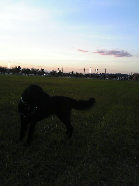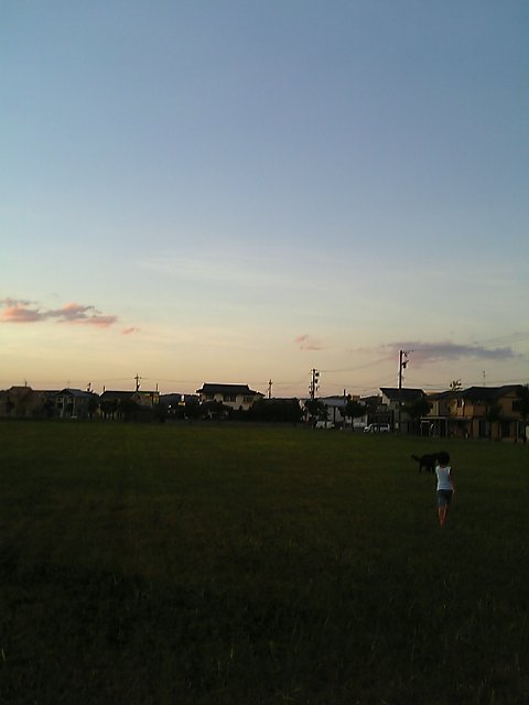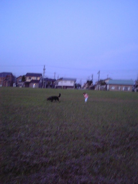 夕方18時ごろからお散歩に、空はまだ明るいのにケータイで撮った写真はこんな感じ。