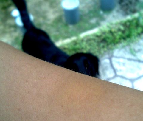 ついつい姉ちゃんに立ち上げって、ルーシー姉ちゃんにするみたいに手と足にハムハムしたらしい。(^皿^)