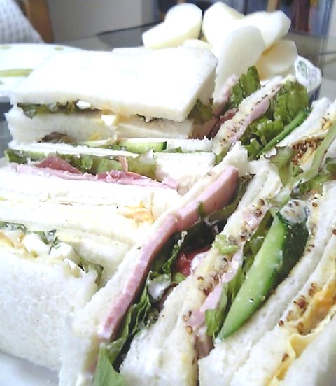ローストビーフやレタスをはさんだサンドウィッチと、