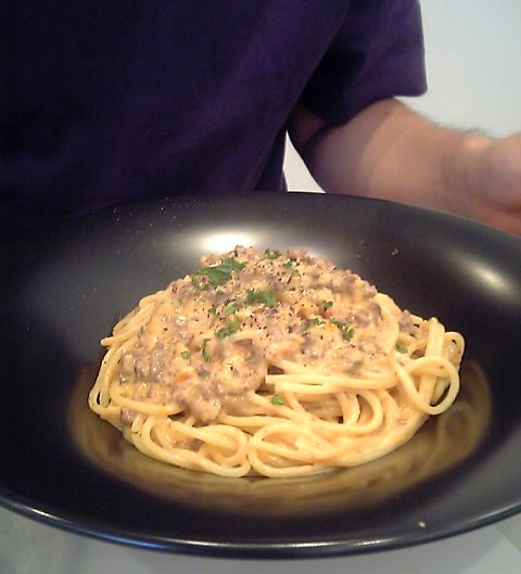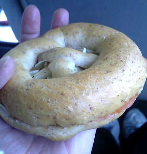 サーモンと玉ねぎをはさんだサンドウィッチ、これが激ウマ!!
