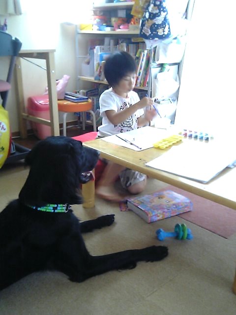 姉ちゃんがお絵描き終わったら遊んでくれるの?とワクワク顔。