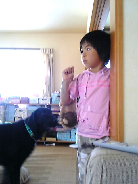 ワンコ3匹(匹ってあたりで判っていただけると思うけど当然ちっこいワンコです^^;)いるとかで、ワンコと一緒に遊ぶんだって。